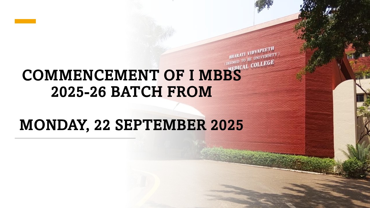 The medical college holds a special place of pride and distinction in the conglomerate of institutions of Bharati Vidyapeeth (Deemed to be University). It is one of the premier institutes imparting quality medical education at undergraduate (MBBS), post graduate (MD /MS) and super specialization level.